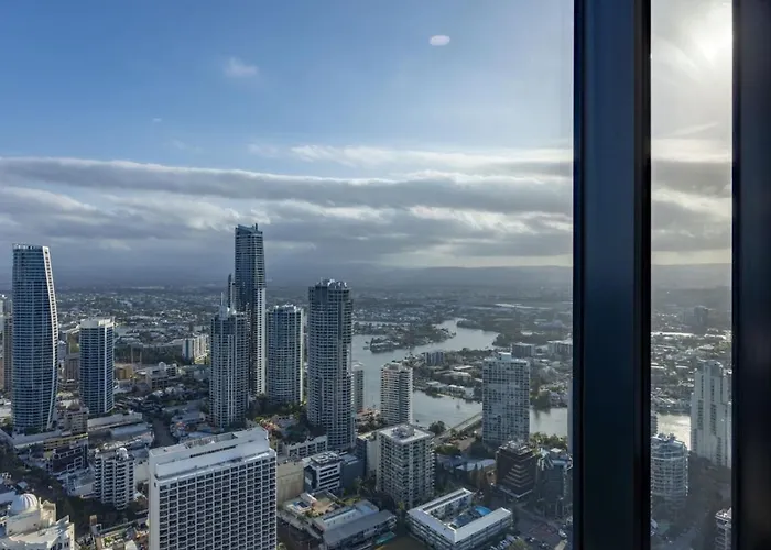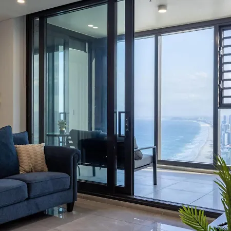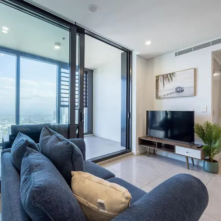 Det finns också ugn och diskmaskin i ett utrustat kök. Busshållplatsen Greyhound Terminal Surfers Paradise är belägen precis runt hörnet från den här 80 m² stora lägenheten. Njut av din vistelse på ett soldäck.